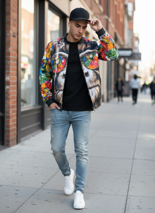 Bomber Giubbino Double Face β Nero e Fantasia Invernale