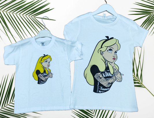 T-Shirt Mini Me Alice nel Paese dei Tattoo β Bambini e Adulti Made in Italy