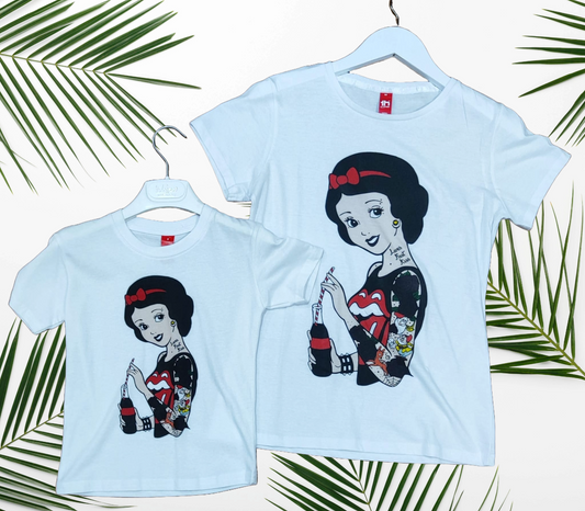 T-Shirt Mini Me Biancaneve con Tatuaggi β Bambini e Adulti Made in Italy Virale