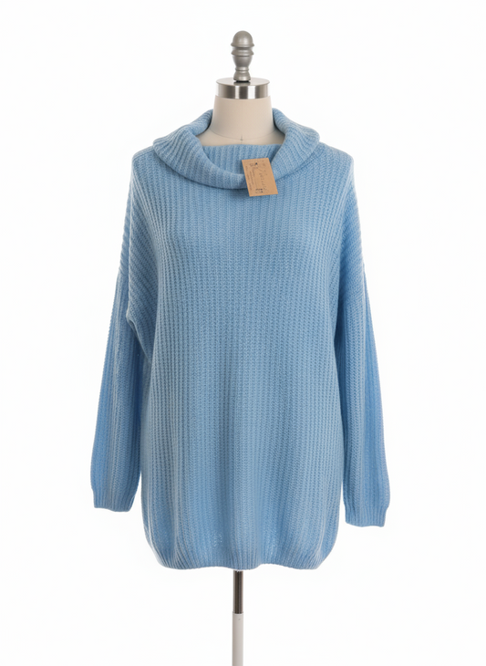 Maglione Dolcevita Over Donna Celeste β Morbido Caldo Super Comodo