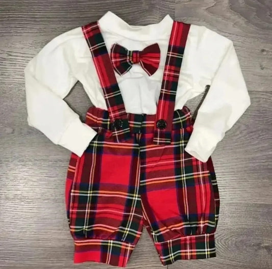 Completino da Bambino Made in Italy in tartan rosso con Bretelle e Papillon da 6 a 36 mesi