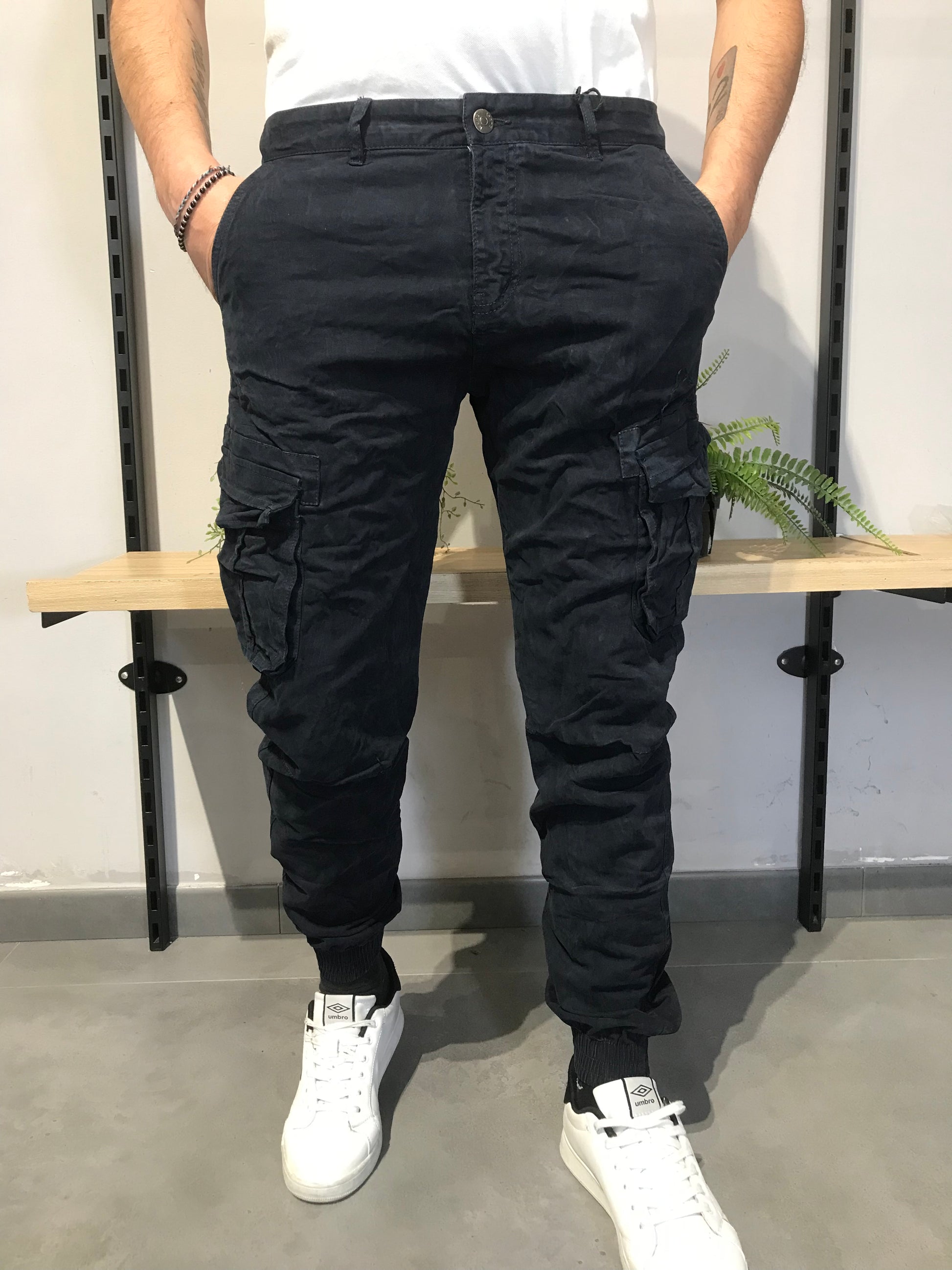 Pantalone Cargo Uomo Invernale – Blu e Grigio, Stile Streetwear
