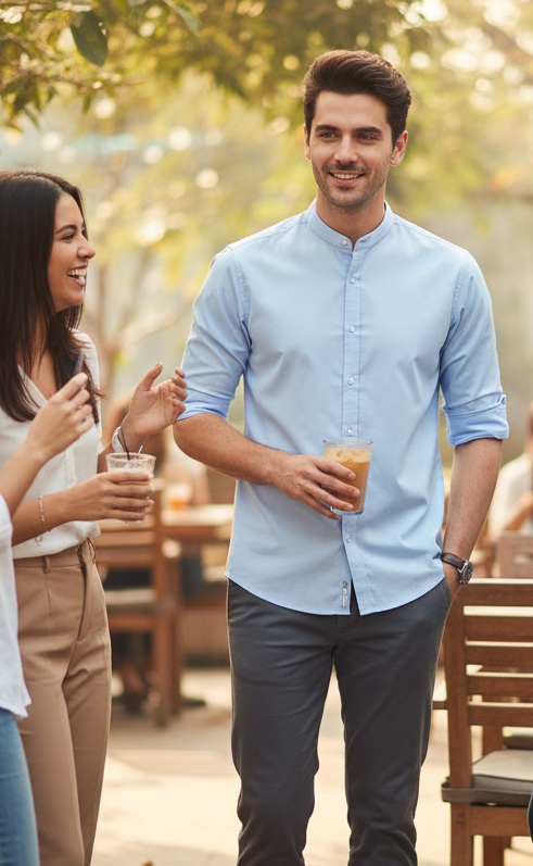 Regala eleganza italiana questo Natale con questa camicia celeste con collo coreano.