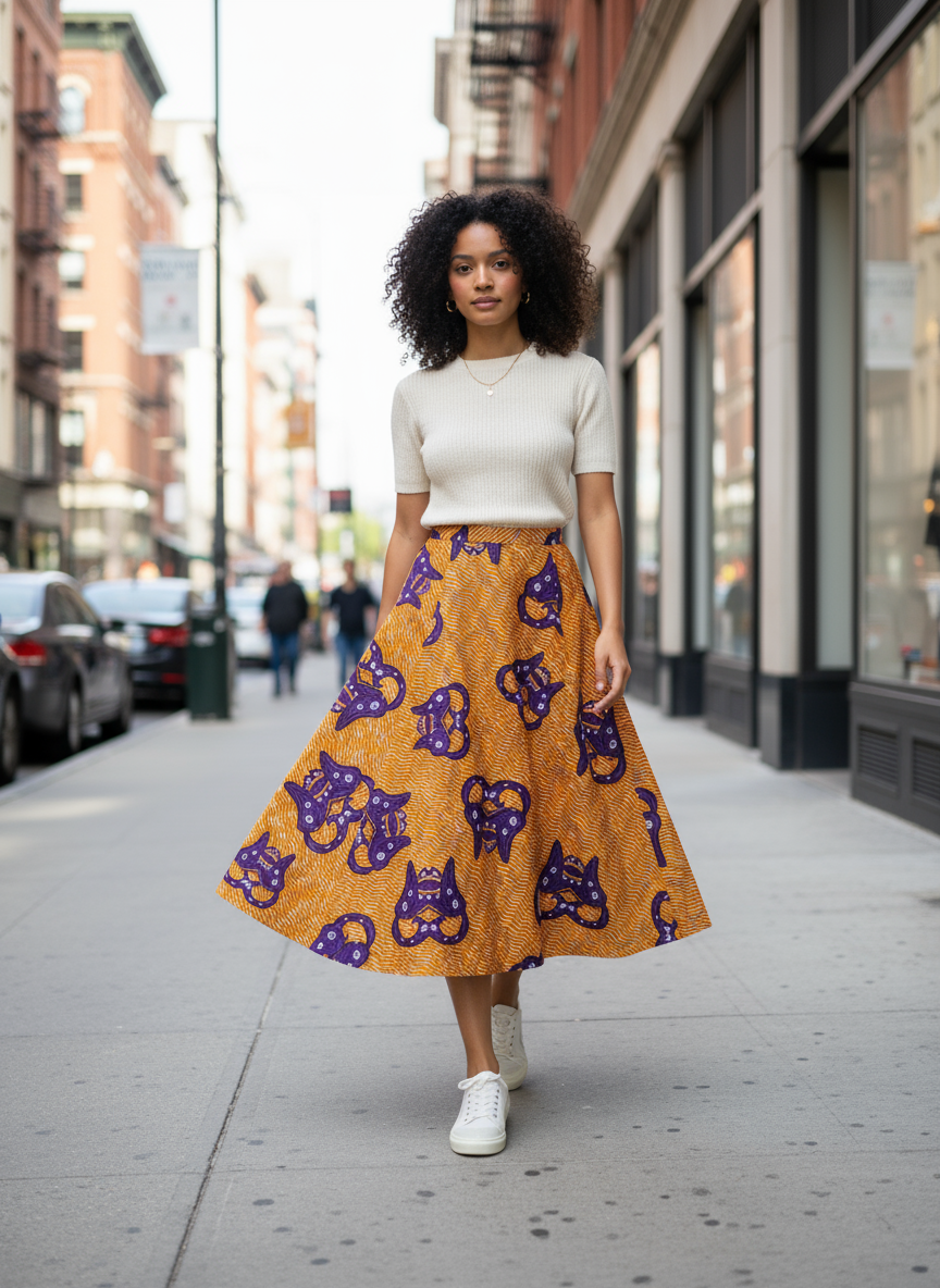 La gonna lunga svasata fantasia etnica è il capo perfetto per chi ama lo stile boho-chic e vintage. Realizzata in cotone Made in Italy, questa gonna con fantasia etnica colorata è ideale per look originali e di carattere.