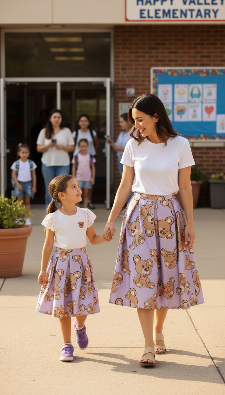 Gonna Mini Me Viola Stampa Teddy – Bambina e Adulti Made in Italy