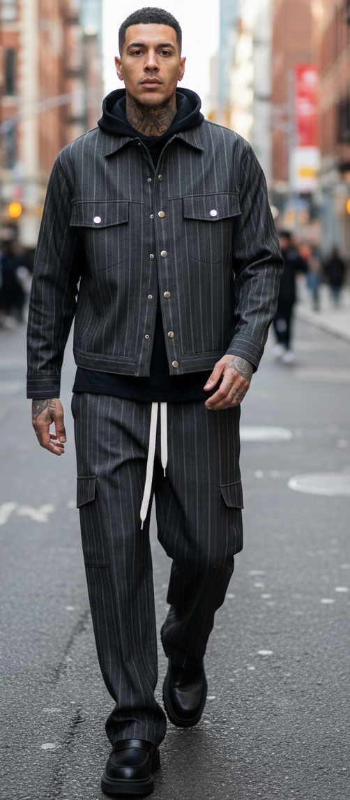 Jeans cargo da uomo con fantasia gessata, progettati per unire funzionalitĂ e stile contemporaneo. Le tasche laterali conferiscono un carattere urban e pratico, mentre il taglio moderno valorizza la linea mantenendo una vestibilitĂ comoda. Un capo ideale per chi cerca un look distintivo, perfetto per outfit casual, streetwear e quotidiani.