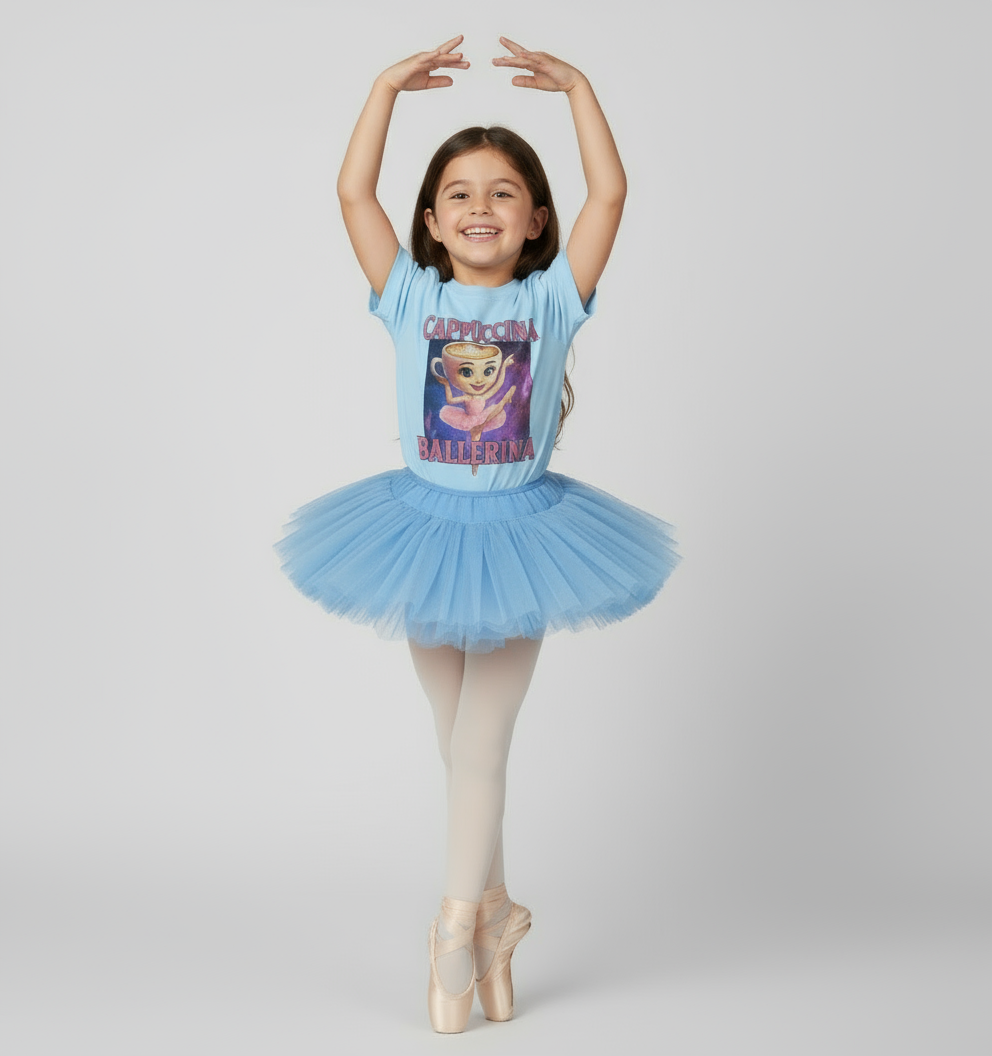 T-Shirt Bambini BrainRot Cappuccina Ballerina – Meme Virale Made in Italy