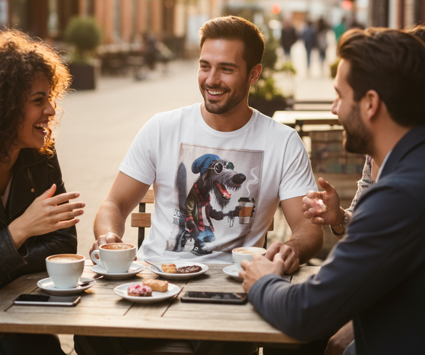 T-shirt Made in Italy con Patch stampa Drunking Dog