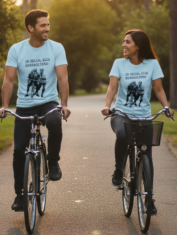 T-Shirt Made in Italy 100% cotone con stampa Fantozzi in sella alla bersagliera, disponile dalla s alla xxxl
