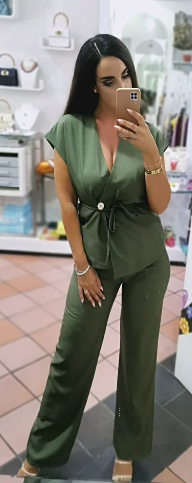 Il tailleur donna autunno inverno è il capo must-have per un look elegante e sempre impeccabile. Realizzato in tessuto di alta qualità , questo completo è composto da giacca a maniche corte con cintura in vita e pantalone a gamba larga, perfetto per valorizzare la silhouette femminile con classe.